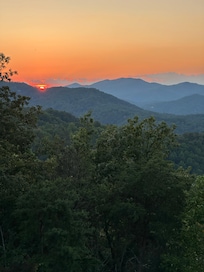 The spectacular unobstructed mountain top sunrises and sunsets over the Great Smoky Mts, and Wears Valley are enhanced with designer landscaping to include waterfalls, fountains, viewing areas, and an outdoor firepit!