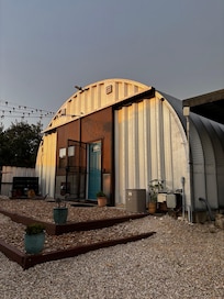 Welcome to your unique and unforgettable stay at the one and only airplane hangar rental in Canyon Lake, Texas! With stunning views of surrounding hills, this spacious hangar has been converted into a stylish and comfortable living space, complete with all the amenities you need for a memorable stay. Relax in the cozy bedroom loft "Low Dome ceilings" , cook up a storm in the fully equipped kitchen, and unwind in the inviting living area. Enjoy the beautiful outdoors. Just minutes from the lake and river!!!