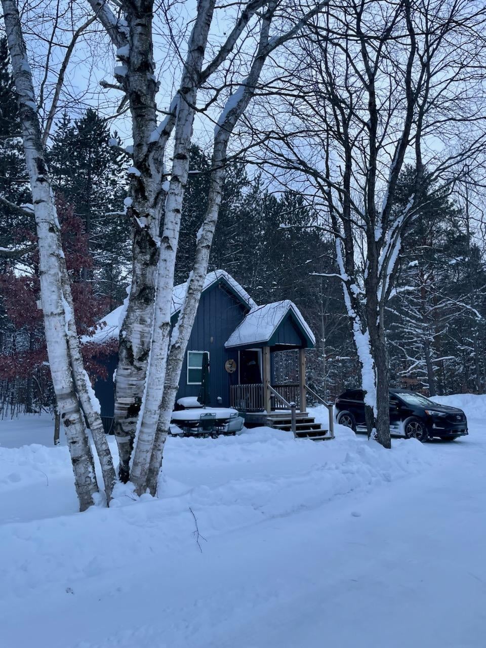 Located in the heart of Northern Michigan, Camp Garno is a 4 season destination! Enjoy beautiful summer days canoeing, rafting and fishing, just a few miles away, on the majestic Manistee River! Chippewa Landing canoe livery is only a short drive and will have all the equipment you will need! Tee up at Emerald Vale and Missaukee Golf Courses, are top notch and within a short drive as well! Check out the local "hidden treasure" known as the bubbling springs; a natural spring in the woods that "bubbles" as it comes up! (Map included at the cabin). With state land across the street, you can trail ride with your ATV, ORV, dirtbike or snowmobile! There are trails for miles and miles in all directions,... the trail head is just a mile up the road! Fall brings beautiful colors to our area making it a great destination for color touring and hiking! Looking for hunting property?? Our cabin has been enjoyed as a hunting camp during deer season by several groups! Our guests have had great success in the woods across the road from the cabin and look forward to coming back again and again! Winter time is beautiful at the cabin, curl up with a book or strap on your snow shoes and go for an adventure! Snow shoe to the river or other scenic views along Michigan's North Country Trail! Interested in down hill skiing? We are within an hour drive of several ski resorts as well! Manton and Lake City have great festivals throughout the year including Manton's Labor Day Harvest Festival and Lake City's Greatest Fourth in the North! Feel free to ask what is happening locally,... there is always something! If your looking for good food and fun, 308 Bar and Grill (Manton) offers comedy night and live music on various weekends along with wood fired pizza, burgers, wraps and steak night on Friday nights (a local favorite)! If you are looking for a fun place to shop and grab lunch, Latitude 44 is a eclectic and tasty coffee/ice cream/ sandwich destination with retail shops that are sure to keep you coming back again and again! Looking to venture out for the day? We are within an hour of wine country (ask for details on the wine tours), venture to Sleeping Bear Dunes or spend a day sunbathing on Lake Michigan! Whatever your style, adventure awaits!! Northern Michigan really is something special!!