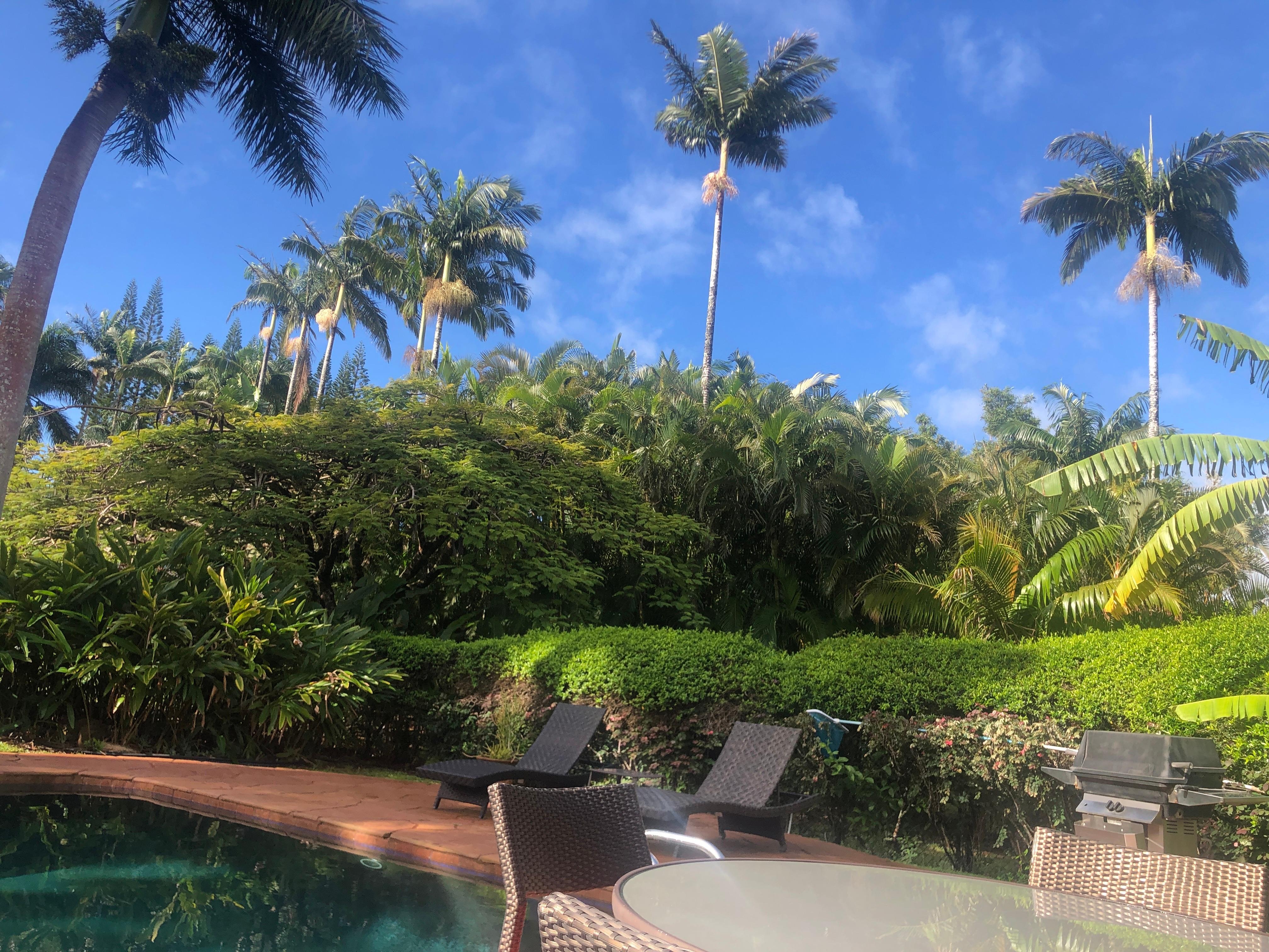 Why do I consider this home unique? “Unique” to me is the experience, rather than the size/look/furnishings of a home. It's a home that begs families to reconnect and create new memories. Our Pililani property has everything you could want – fruit orchard, fish ponds, pool, hot-tub, sauna, tennis / pickleball court, but yet it's the small things that delight the guests. For example, the Fairy Garden, a resting place for fairies as they travel through the area. Or the custom mosaics that are discovered in unusual places. Can't find grandma? She probably discovered the reading nook tucked into an alcove of gardenia bushes. Perhaps “unique” is the amazing outdoor shower that's tiled to look like a wave. Many of our guests have never showered outdoors until they come to Pililani. When they depart, they're trying to figure out how to build an outdoor shower at home. There's “discovery”, as a young child sees fruit growing on trees, rather than sitting on a shelf in the supermarket. And the warm glow as a grandparent teaches a toddler to swim in the pool, or a parent teaches their child how to swing a tennis racket. At the end of the day, hear the contented sigh of a cyclist as they settle into the sauna after a ride to the summit of Haleakala (quite a feat).