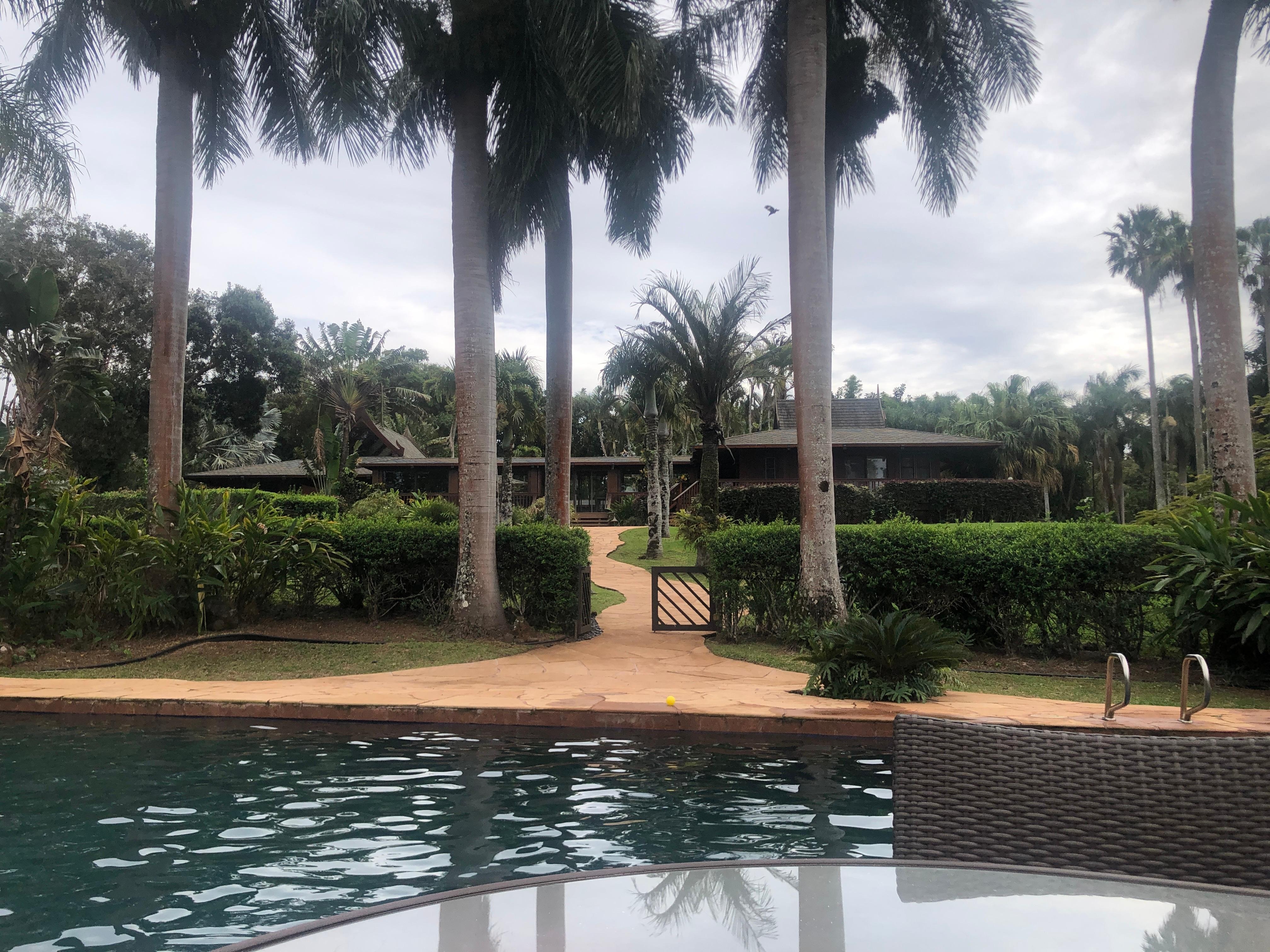 This is an exceptional upcountry property, suited to travelers looking for a unique home in a rural setting. Very careful attention has been paid to every detail. Entry to the property is through a custom crafted bronze gate. The long driveway winds through a hedged area, to parking spaces at the back of the house.