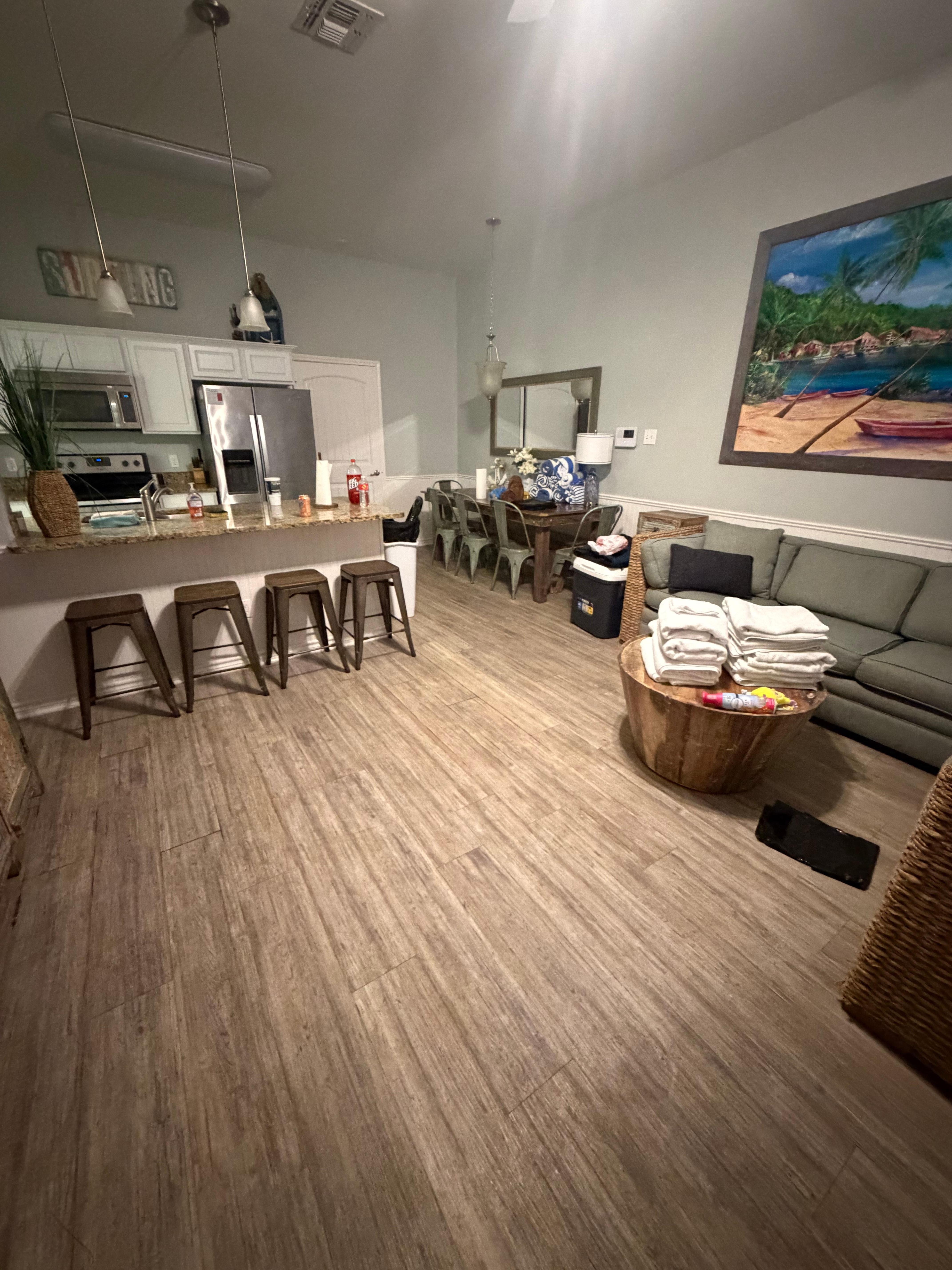 The open layout and spacious design make it easy for everyone to unwind. You’ll find conveniences like a private washer and dryer, central A/C, free WiFi, cable & Roku TV. The fully equipped kitchen and outdoor gas grill are perfect for preparing your favorite meals, which you can savor on the balcony while soaking in the ocean breeze.