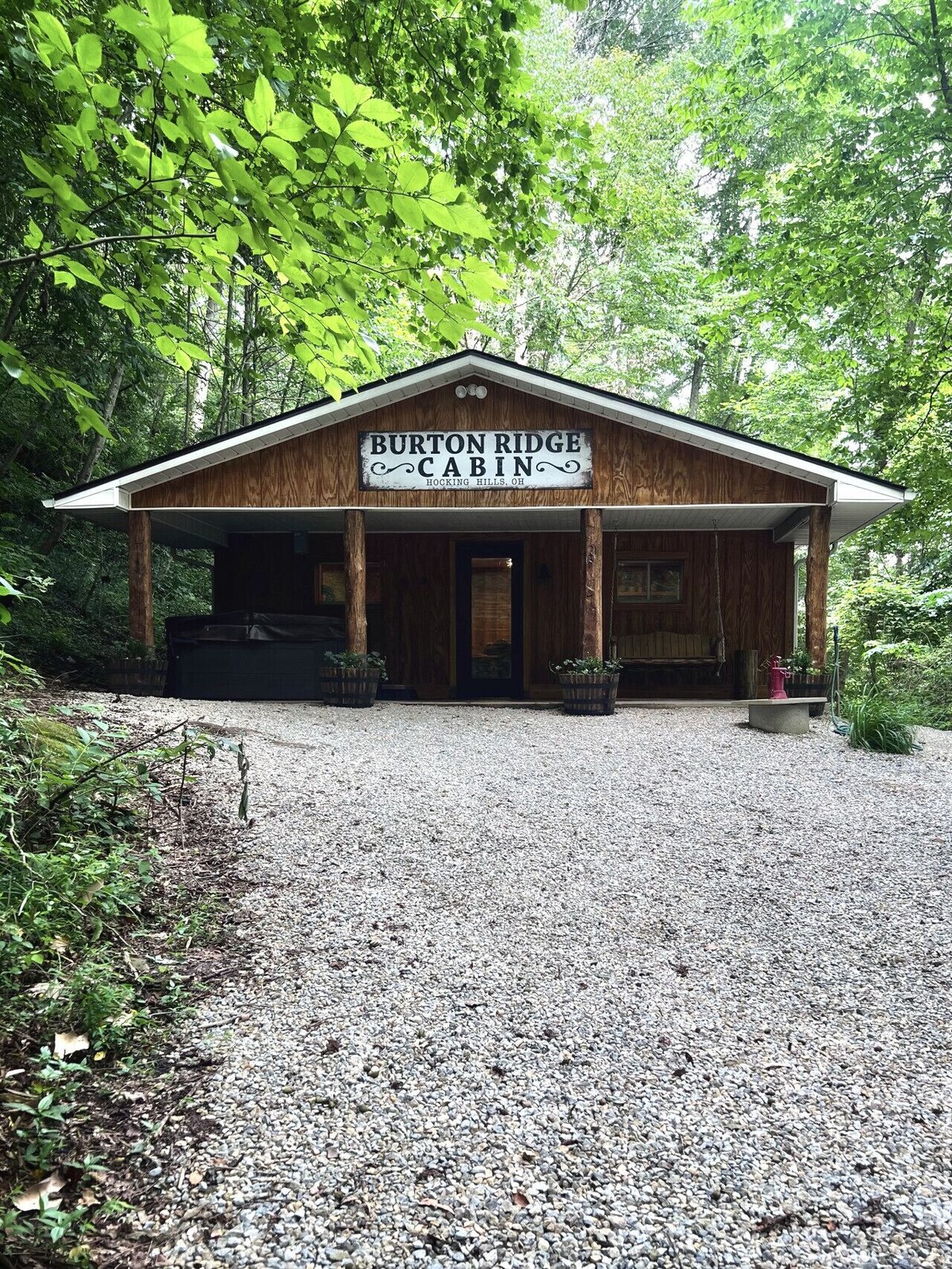 Escape to this brand-new, pet-friendly cabin on 22 private acres in Hocking Hills. Located just minutes from Ash Cave and Old Man’s Cave, it offers a hot tub, wet/dry sauna, wood-burning stove, central air, and a fully stocked kitchen. Enjoy an old-school arcade game, a walking trail through the woods, and frequent wildlife sightings. With rustic charm and modern comforts, plus Jimbo’s Bar & Grill next door, this cozy retreat is the perfect base for your stay.
