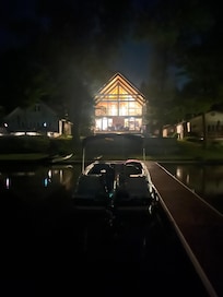 Family fun at the lake in this 5-bedroom lakehouse. This tremendous property boasts 2 queen beds, 1 king bed, 1 full bed and an 6-bed bunk room. 3 of the rooms have private en-suite. Fully stocked kitchen, dining room and large living/TV area, large open basement (rare at the lake) perfect for younger kids (with TV, pingpong, puzzles and games), a large covered porch with outdoor fireplace, a shallow private swim area and dock, 3 kayaks,1 paddleboard, lifejackets and floats/lillypad, bbq grill and sunsets almost every night! We are happy to assist with any questions while you stay at our house.