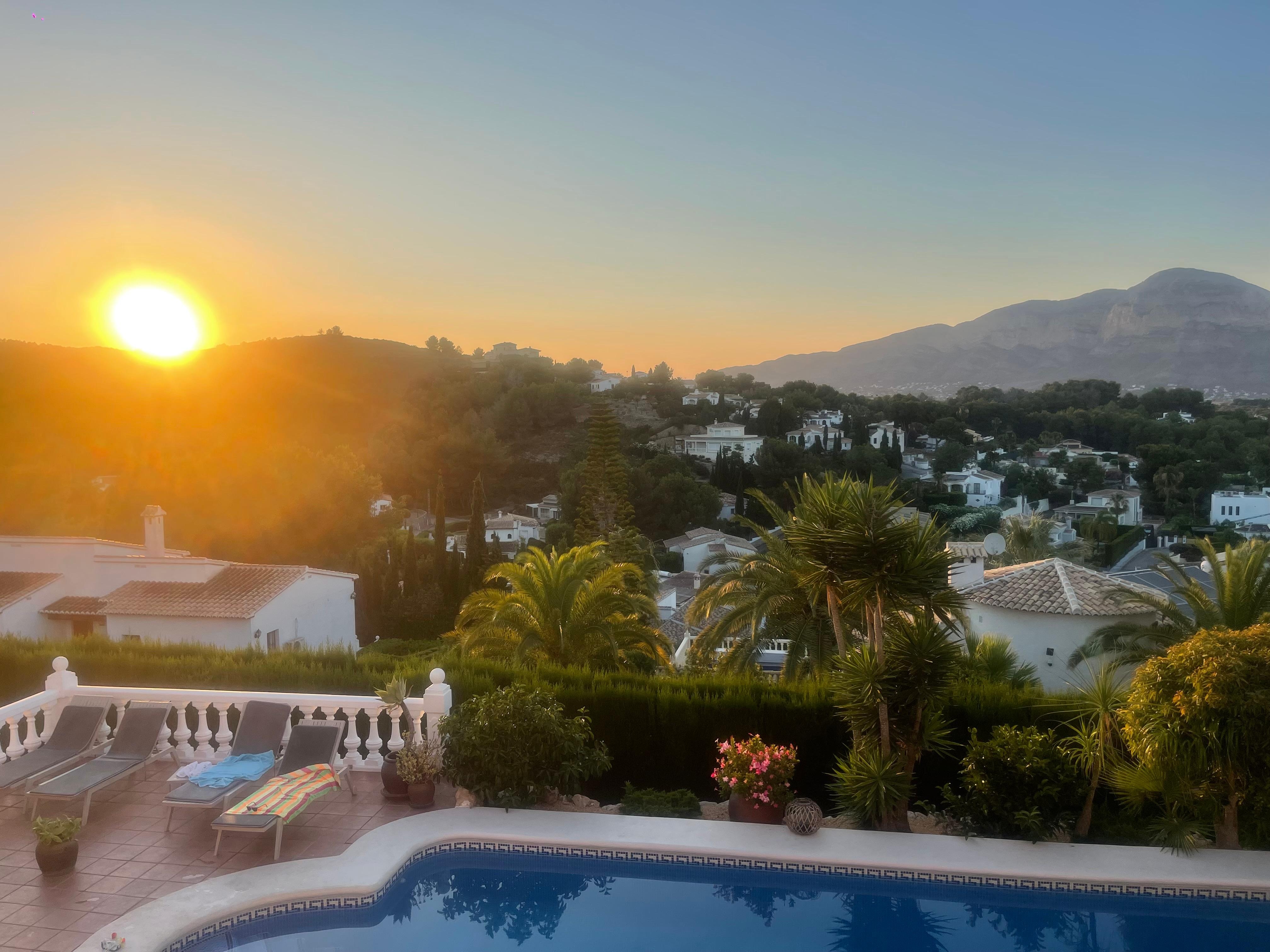 The house has 6 bedrooms, 3 bathrooms, 2 fully equipped kitchens, a bright comfortable lounge dining room, a fabulous outside bar-kitchen entertainment area, spacious upper sunbathing terrace with fantastic views of Montgo Mountain, a 10mx5m Roman end pool and large surrounding sun terrace, a pool/games room, a fast WiFi network.