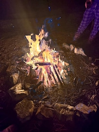 The fire pit is located on the beach for night time gathering and s'more cooking. Please bring your own wood.