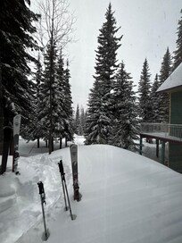 We are located right on Knoll Ski-way, easy walking and skiing to the Village, with nordic and alpine access right out the lower door. Tube town, Brewers Pond, Silver Queen Chair and Silver Woods Chair are very near. 200 paces takes you to a short slope to the top of Silver Woods Chair. Ours is a great location with beautiful Mountain sunsets, a view of the slopes, and even a variety of birds at the neighbour's feeder sometimes. You will love it here!