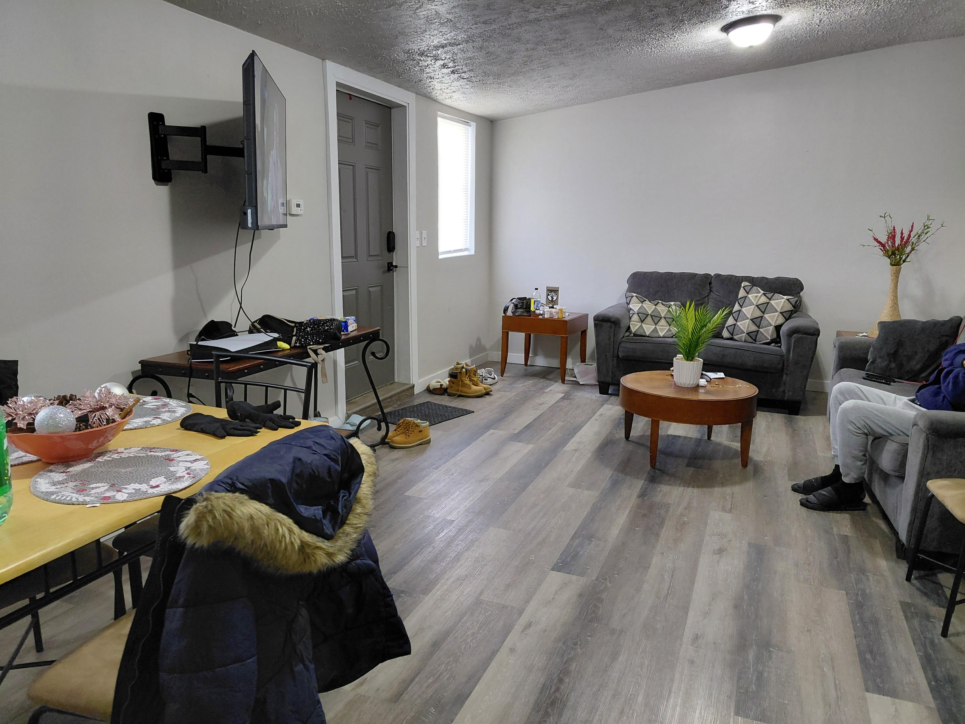A comfortable living room with a smart TV and Wi-Fi for streaming or catching up on work