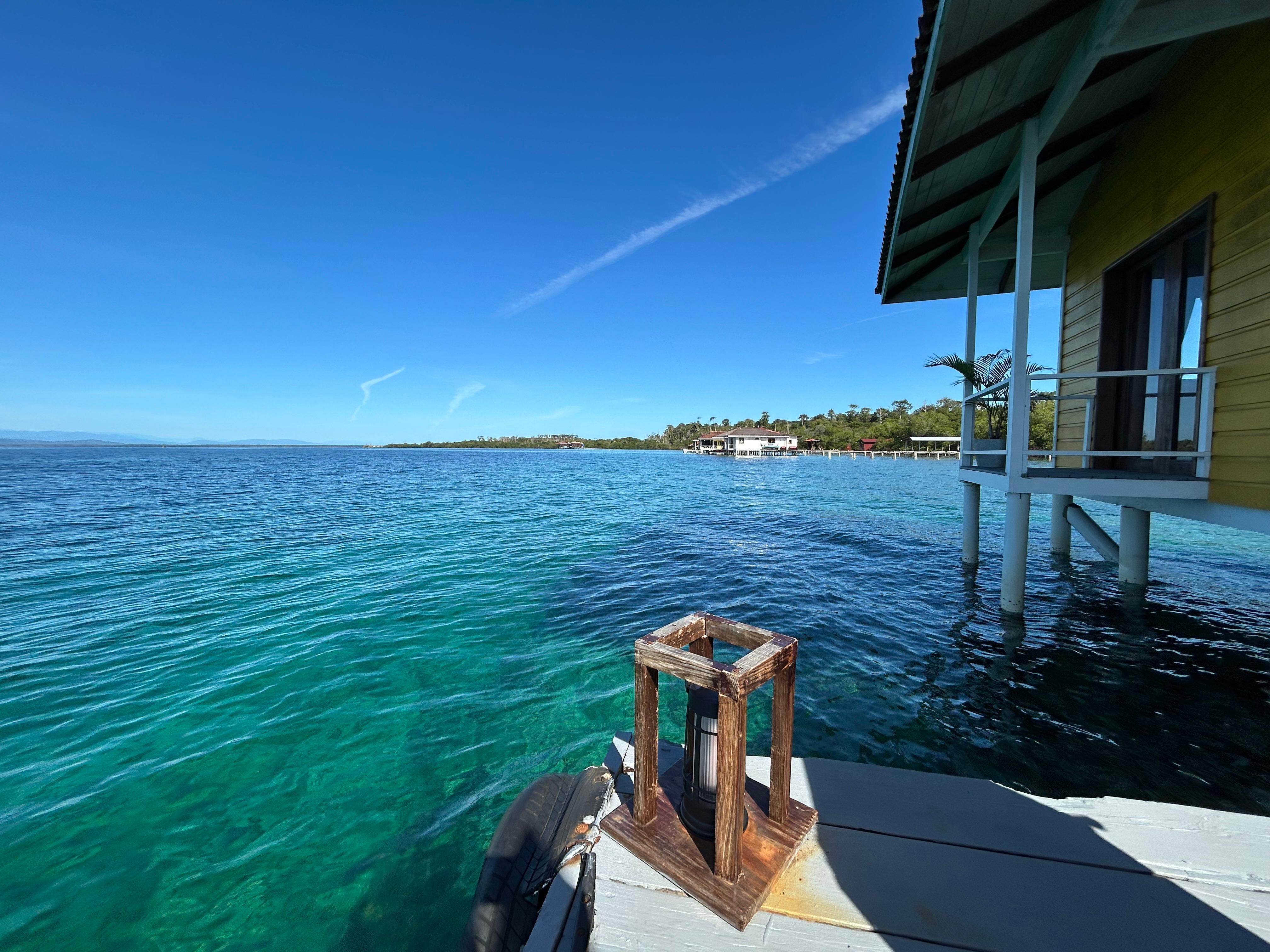 The house is situated 200 feet from the land on stilts in the Caribbean Sea. It's completely off-grid relying on sunshine and rain catchment. This area commits to providing both!