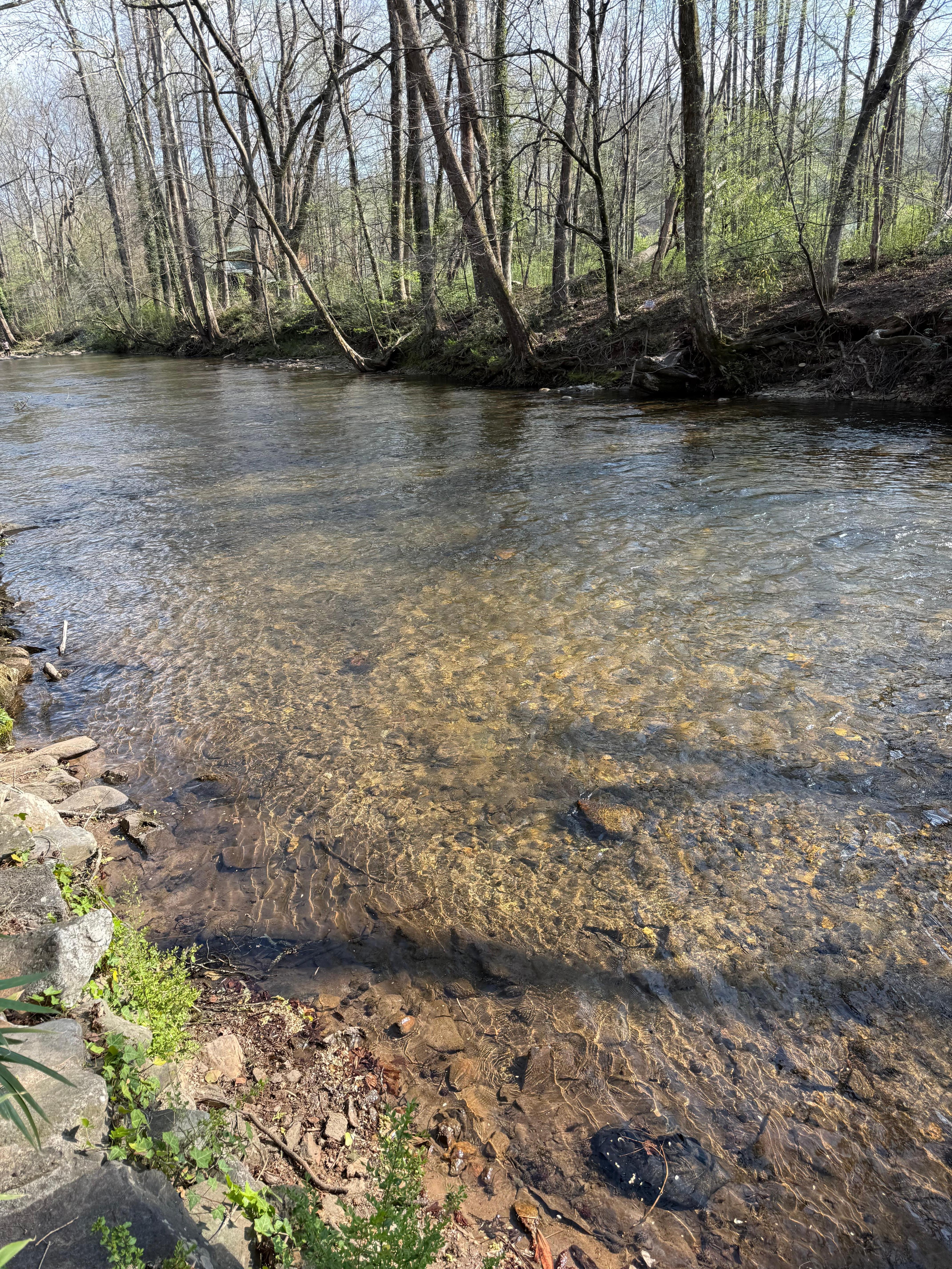 This property is NOT river front as Vrbo AI may be advertising! The river is however, directly across the street. Access: aprox 30-50', across street, at the end of fence and at the old bridge, offering access to the Chattahoochee River & fly fishing paradise. The rocking chair, side porch is facing the back side of Betty's store and a pretty, grass field. The front parking area of this bungalow offers some views of the river. *Our other two Bunhalows offer some views of river from front porches.