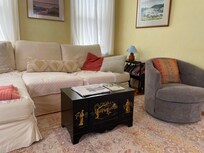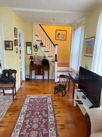 This family home was built in 1876 and is lovingly maintained. The family is related to Richard Tarr one of the first settlers in Rockport. Quaint, charming, sunny and cozy. There are special touches like the hand painted murals from the 1940's that make the house uniquely inviting. There is a lovely garden and patio for outdoor dining.