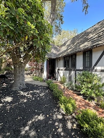 Beautiful European 2 Bedroom, one Bath Cottage. An Original Cotswold Tudor designed by the fairytale architect of Carmel: Hugh Comstock. Quiet location with a private garden. Park your car in the gravel drive & leave it there for the balance of your stay. Walk to town and explore all of the charming shops and renowned restaurants & cafes. Walk to the Mission and beaches, too. Explore the many secret pathways that wind through our village. Relax and have a cup of tea or glass of wine in the garden and breath in the relaxing sea air.