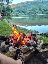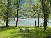 16' x 36' Swimming Pool Open. Cabin has everything! You only need food and drink. It is part of a "PRIVATE'' 13 acre island property, with causeway out to island. Cabin comes with 1 Old Town canoe or 2 Sun Dolphin kayaks, gas grill and a FREE CRATE OF SEASONED FIRE WOOD EACH NIGHT. It is the most beautiful, untouched and widest part of TRG. TRG Island is 3' ft. out of river. The Tennessee River here is 1/2 mile wide and only moving about 3 mph. YOU CAN'T SEE OR HEAR ONE CABIN FROM ANOTHER. We are at the 440 mile marker. Beach gradually sloping to 85' ft. deep water. 'In shade all day'. With 1,800 ft. mountains and cliffs all around the island, highest of the 652 miles of The Tennessee River.