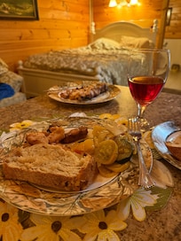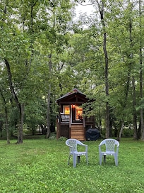 Your cabin is 40 ft. from the river and only 3 ft. down to water. One person Jacuzzi bath tub, full kitchen, one queen bed.
