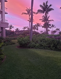 The family friendly Ground Floor units include many bonuses not offered on any of the floors above. Extra tall 11' ceilings, oversized lanai's, and very quick and easy access in and out (from the Lanai or condo door) ... no elevators needed. The lanai opens up to the a lush garden area, pathways down to the pools, and views of the resort and ocean.