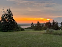 Cottage View: You will have amazing views of the sand dunes, Cabot Provincial beach, Malpeque harbor and the open ocean. You can view the fishing and lobster boats leave and return to the Malpeque wharf or just stare at the ocean surf. The cottage has been situated to take maximum advantage of the amazing unobstructed ocean views, the stunning sunrises and sunsets. You will have over an acre of land surrounded by sprawling farm fields, PEI lupins, nature and ocean. There is plenty of room to stroll, explore, kayak, bird watch (blue herons frequent the area), bicycle, beachcomb, dig for clams and of course relax!