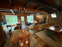By law we have to charge CC transient tax of 6% which VRBO is not allowed to collect at booking. We will invoice you after booking. We require our paperwork and all fees to be cleared up before access codes are given. Our cabin is set up for relaxation and down time. We have kept most of the old fashion appeal of days gone by or vacations spent as a child. We kicked it up a notch with the extensive decks and covered hot tub and newly appointed stainless appliances with concrete counter tops. We kept the cushy furniture and antique touches leaving a feeling of a true getaway. Our feeling of true perfection is not matchy-matchy furniture, but rather acquired through the years where you feel able to kick your shoes off, build a fire, read a book and just feel simplicity. No one across the river and neighbors set a distance away. This home has the privacy many are lacking. Due to insurance requirements cameras are on site.