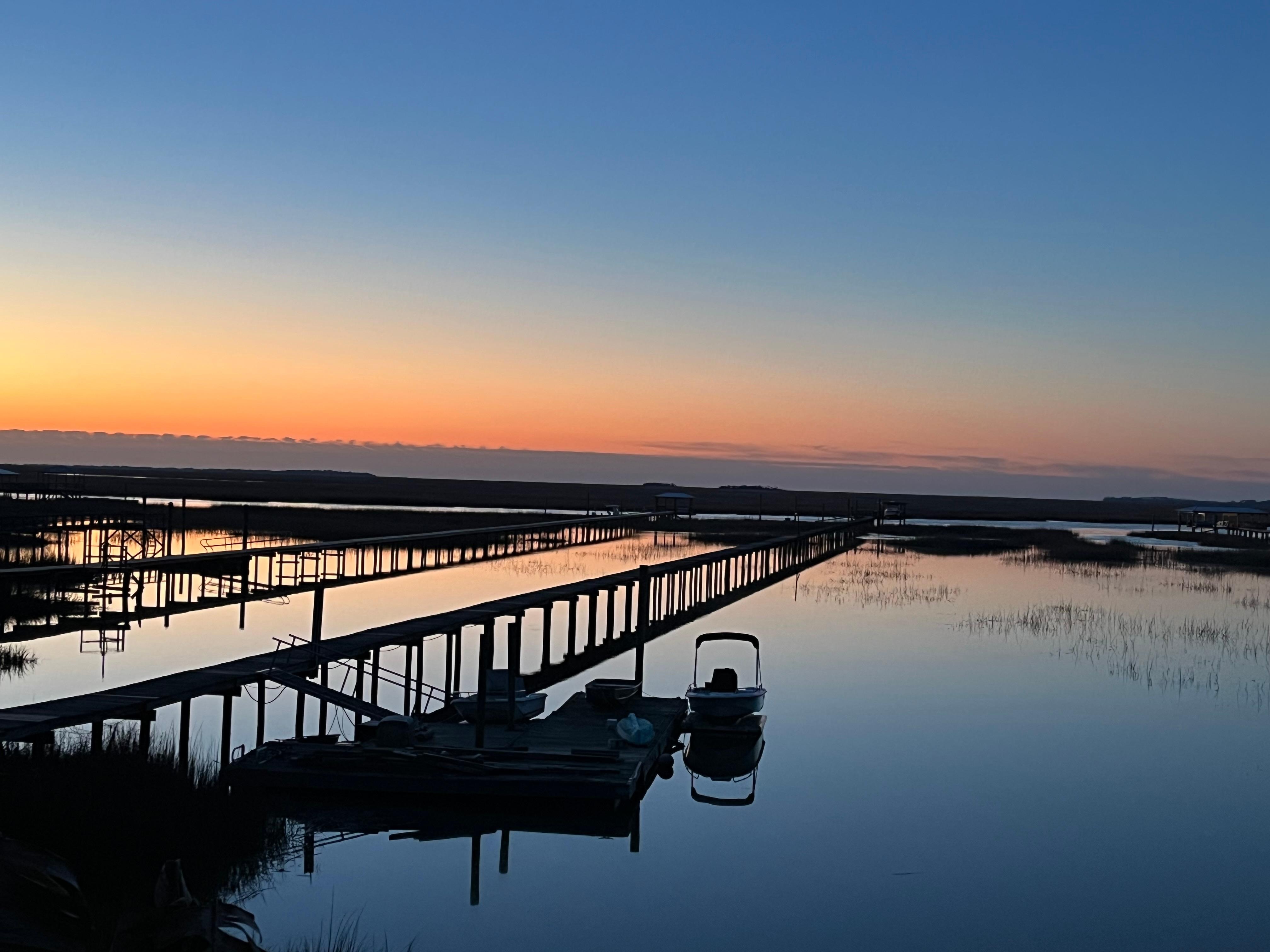 Located on Wilmington Island. 15 minutes from historic downtown Savannah, 15 minutes from Tybee Island beaches – but not sure why you would ever want to leave this view! Beautiful view of Half Moon River across the marsh to Wassau Sound, barrier islands and ocean beyond. We are renting to you the bottom floor of our vacation home which has its own separate entrances and is completely separate from the upstairs. Master bedroom with water view has a king bed, flat screen TV. Second bedroom has queen bed, flat screen TV. Sitting area has two large sofas and another flat screen TV. Fully equipped kitchen (all electric -no gas appliances). Swimming pool with lounge chairs and view of the water. Gas grill and covered outside eating area. Two docks. The long dock, a 900 foot walk out to the deep water river, is a wonderful spot to fish, catch crabs or watch for dolphins. Great private outdoor shower also. You are welcome to bring your boat - public boat ramp or marina is 3 miles by land or 8 miles by water. From the house it is 4 miles by water to beaches and sand bars accessible only by boat. 4 more miles will bring you to the south end of Tybee where you can dock at restaurants such as A.J.'s and the Crab Shack. Bought this home because of the privacy, amazing view and the easy access to the ocean and barrier islands. So fun to go out to spend the day on the sandbars or explore the tidal creeks. Then at home, sit and watch the egrets and great blue herons in the tidal marsh. Because of the 8 foot tidal swing, the view is always changing. We have outdoor cameras viewing the front and back yards. There are NO indoor cameras.