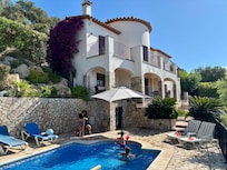 This stunning luxury villa sits in its own multi-level gardens in the exclusive, private community of Cabanyes, a short distance from the beautiful Blue Flag beaches of the Costa Brava. It is finished to a very high standard and is comprehensively equipped with all modern conveniences. The exterior of the property benefits from a south facing, sunny aspect, with shady retreats. The interior has been tastefully decorated and feels like a 'home from home'. The heated, private pool is suitable for young children and can be viewed from the terraces and balconies. Only a 5 minute drive away is the medieval town of Calonge, where restaurants and shops can be found. Not much further, at 5km, is the seaside resort of Sant Antoni de Calonge which has a 5km long family beach with a wide promenade plus many shops, restaurants and tapas bars! The villa is conveniently situated for daily excursions to Girona, Barcelona and the South of France. It also has many renowned golf clubs within 25 mins drive. We have many more pictures and details online, but the link is blocked here. Please use a search engine with Villa Shangri-La and Cabanyes as your key words. *** Please note that, during the Summer Season, we only offer Saturday to Saturday rental periods, with multiples of 7 nights.***