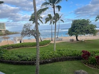 You have dramatic ocean views and can keep your doors and windows open all night, with privacy in this third-floor Ocean Villa at Turtle Bay! This penthouse villa is just steps from the sandy beach with beautiful ocean and pool views from the lanai, living room and master bedroom by elevator or staircase. It has a serene lanai where you can see the ocean and all the tiki torches lighting the grounds at night! There are just 40 yards of lawn before the sandy beach, and the pool and BBQs are just down the stairs about 20 yards from the villa!