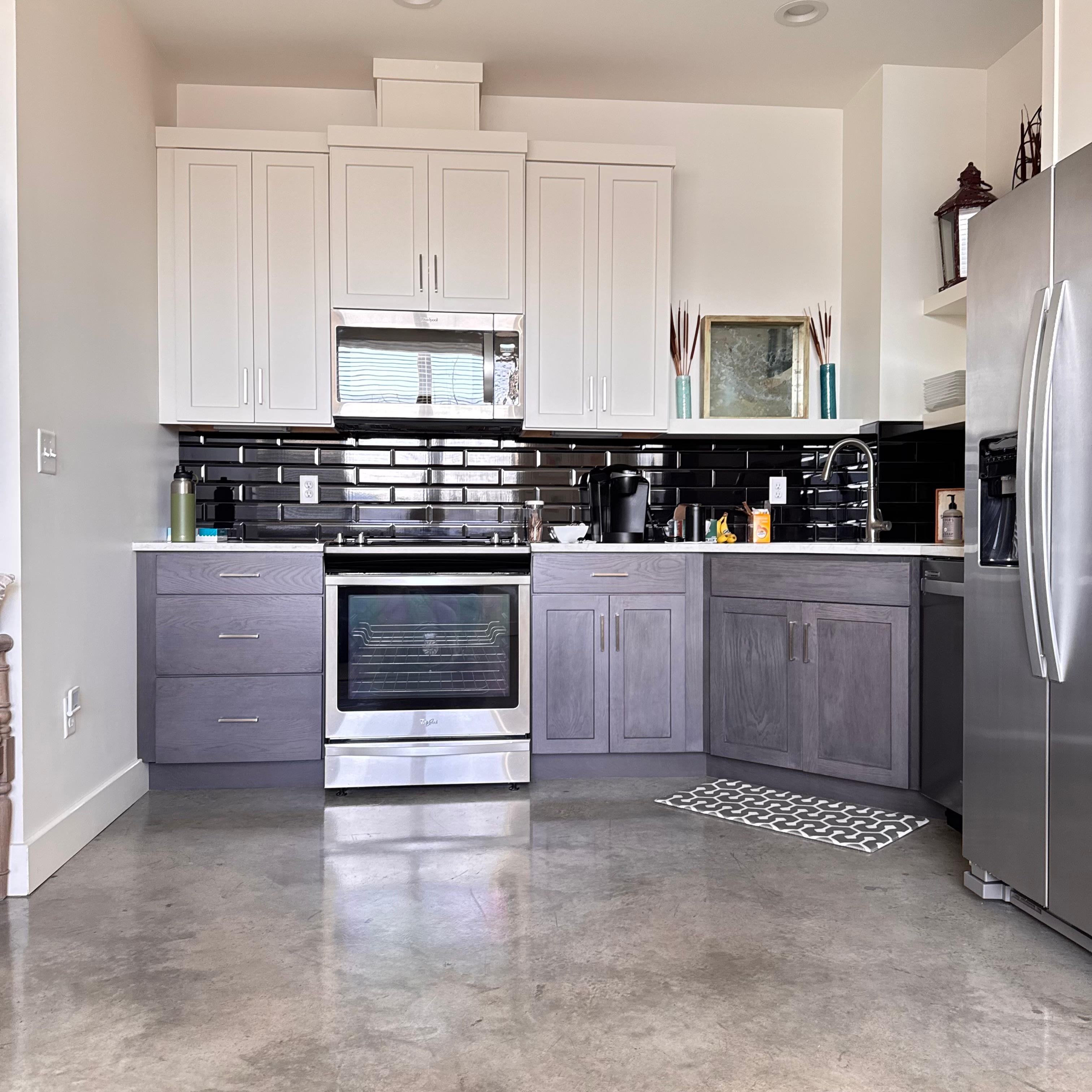 This building was just completed in June 2019. There are three units in the building, and this one is 1200 square feet of pure luxury to relax and unwind. It has an industrial vibe with concrete floors, black tile kitchen and baths, and views of Lookout Mountain and the Chattanooga Choo Choo. Gorgeous hideout that is spacious, light filled, and design led. New furniture. High speed internet and smart TV. Privacy galore, free parking, central location, and walk everywhere.