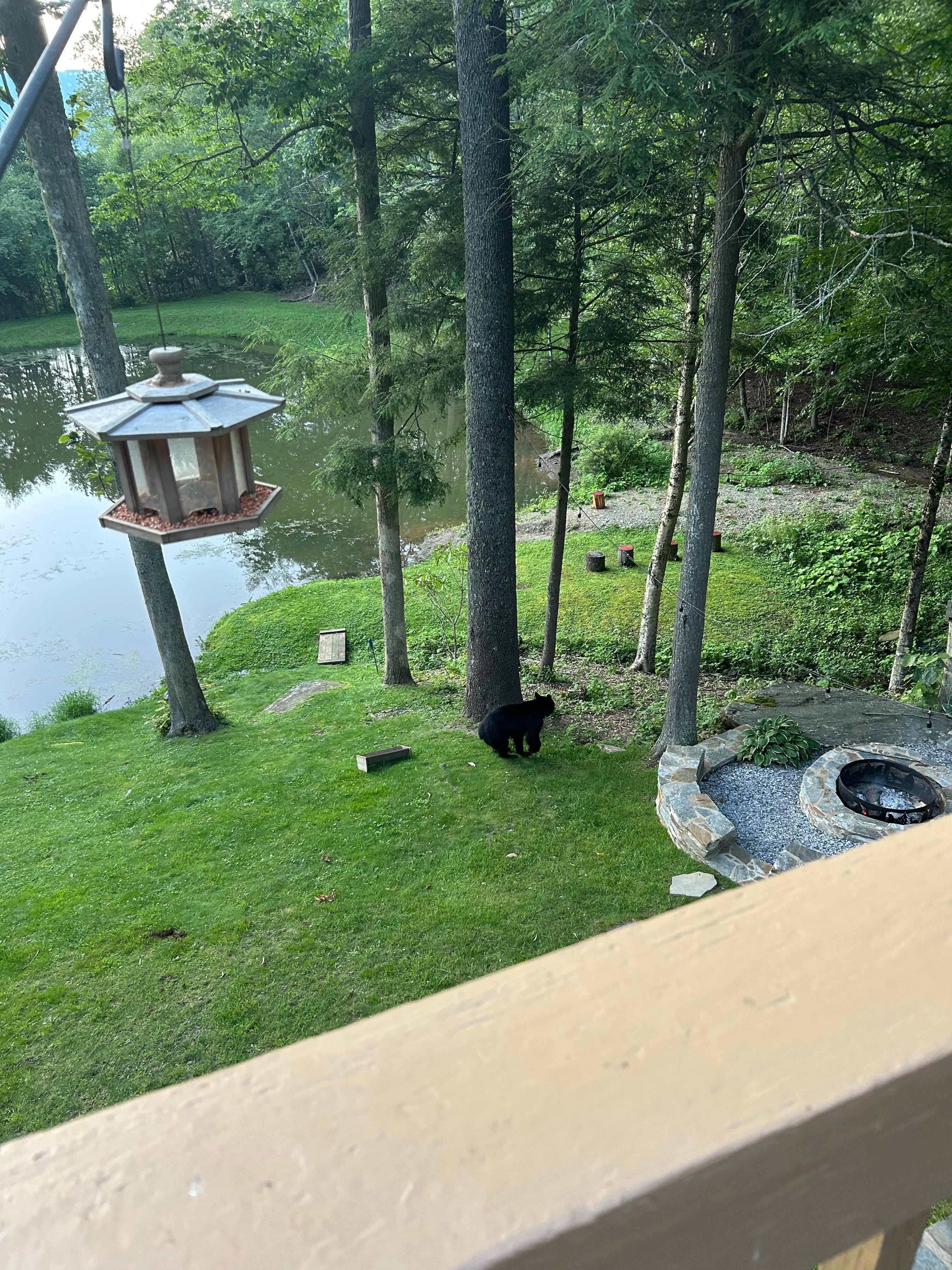 Peace Be With You---enjoy your morning coffee on the deck overlooking a peaceful pond, long-range views of Beech Mountain, and the sound of a nearby running stream with small waterfalls! Annie’s Cabin is located on Sugar Mountain at approximately 4350 feet and less than 5-8 minutes from the Sugar Mountain Ski Resort, Golf Course, Tennis Courts, Hiking Trails, Grocery Stores, Restaurants, Antique Shops, and Churches. Two king size beds, one queen size bed, and a set of bunk beds sleep eight guests. The newly renovated home includes central heat and air conditioning, rustic oak style flooring, new paint, a remodeled kitchen with stainless appliances and granite countertops, gas log fireplace, washer and dryer, wireless internet, cable HDTV in the family room and all bedrooms, and a gas grill on the deck. This is your home-away-from-home to fish, relax, and enjoy the many attractions of the Pisgah National Forest, Blue Ridge Parkway, and the North Carolina High Country, including Grandfather Mountain, Linville Falls, Linville Caverns, Historic Banner Elk and Boone, and Tweetsie Railroad for the kids. The Cabin is not suitable for toddlers of crawling age to 3 years due to the pond behind the cabin, the steps on the side of the cabin, the upper deck with attached benches, and open stone fireplace with hearth that could present safety issues. We do not accept long term rentals (30+ days). We have two Ring cameras/flood lights on the premises, front walkway and Eagle side of backyard. Once guests notifies host that they have arrived, the front camera is turned off until the morning of departure. The back ring remains on due to the wildlife that frequents the property, but with no audio.