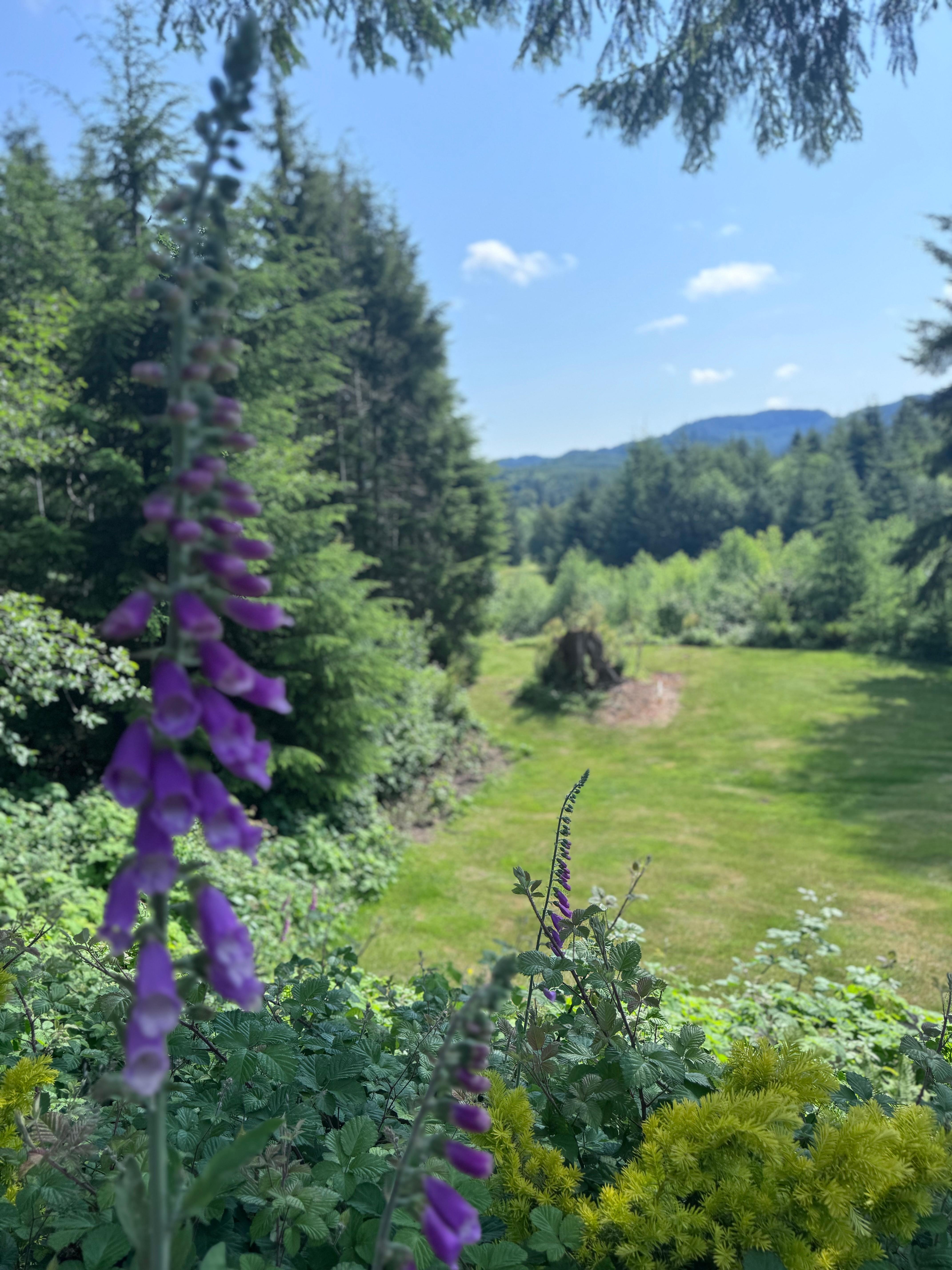 Gas fireplace in family room with access onto covered entry and back porch/deck. Large view windows to back yard and surrounding lands and custom fire ring. Long private drive off hwy 101 with plenty of parking and open grass area.