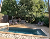 It is very appreciated for its swimming pool during the day, its jacuzzi in the evening, its shaded terrace, the freshness of the forest nearby