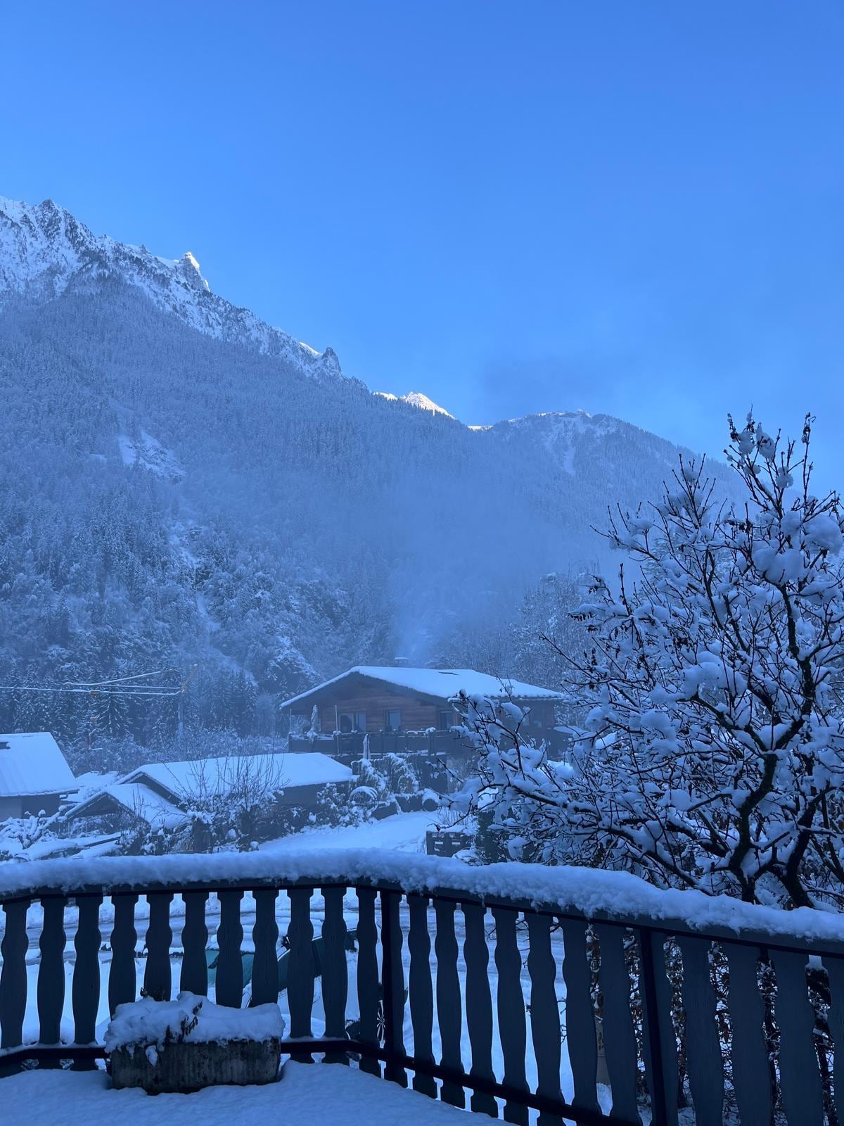Wonderful period 3 bed ski chalet, full of charm and character within the Chamonix valley, perfect for a family holiday. The living and dining accommodation is outstanding and everything is provided for enjoying cosy evenings in by the fire. The setting is very pretty with views of the snow topped mountains. Quiet village location in Les Pelerins with local butcher, boulongerie and supermarket nearby and excellent free train and bus links up and down the valley. Les Houches 20 mins by bus to the base of Le Prarion. 10 mins train link into Chamonix centre. We had a wonderful 11 days of skiing mainly at Les Houches in glorious sunshine.