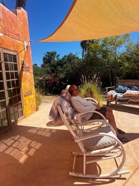 The ranch is like Narnia! It was built as a retreat over 25 years. It has a peaceful and serene energy that makes everyone feel like they are part of something special. It's so amazing for exploring fun and we have a friendly open policy for guests to be able to use the swimming pool, tennis court and walk through the trees just exploring. The casitas are all about 50 yards apart. The ranch and the casitas have never been about the money. The ranch is about people who want to experience something special. After all, it's a working mango ranch! Why rent just a house with a small yard when you can rent an amazing house and when you walk outside you’re blown away because you part of a 25 acre mango ranch. The rescue dogs are a hige part of the ranch and every house. They greet you. Hang out with you and tell you their stories. Amazing. In the early mornings, there are hundreds of doves calling you. It's incredible the life we have with 600 trees! Evenings can be spent with our fire pits with crackling wood. We provide endless firewood and Firepits are a huge part of us. Evenings spent around the fire in the Baja are magical for connecting with others. And the nights can be chilly here at 60 degrees low. The tennis court is grass and easy on the knees. The nicest court in the Baja. Again, The rescue dogs are sooooo wonderful and everyone loves them and no guests want to leave. the serene energy of the ranch heals all. Including humans. The beach is literally a couple hundred yards - just the perfect distance. Believe me, you don't want to live right on the Pacific Ocean. The Pacific Ocean can talk. It’s a cooler strong ocean. And the breezes at sunset can be chilly. When you're living right on the beach in Baja it's very barren from salt and cold breezes in the late afternoon. It's a fun 200 yard walk to the beach down our driveway and then a small dirt road surrounded by flowers. Coming back to the warm ranch always feels good.