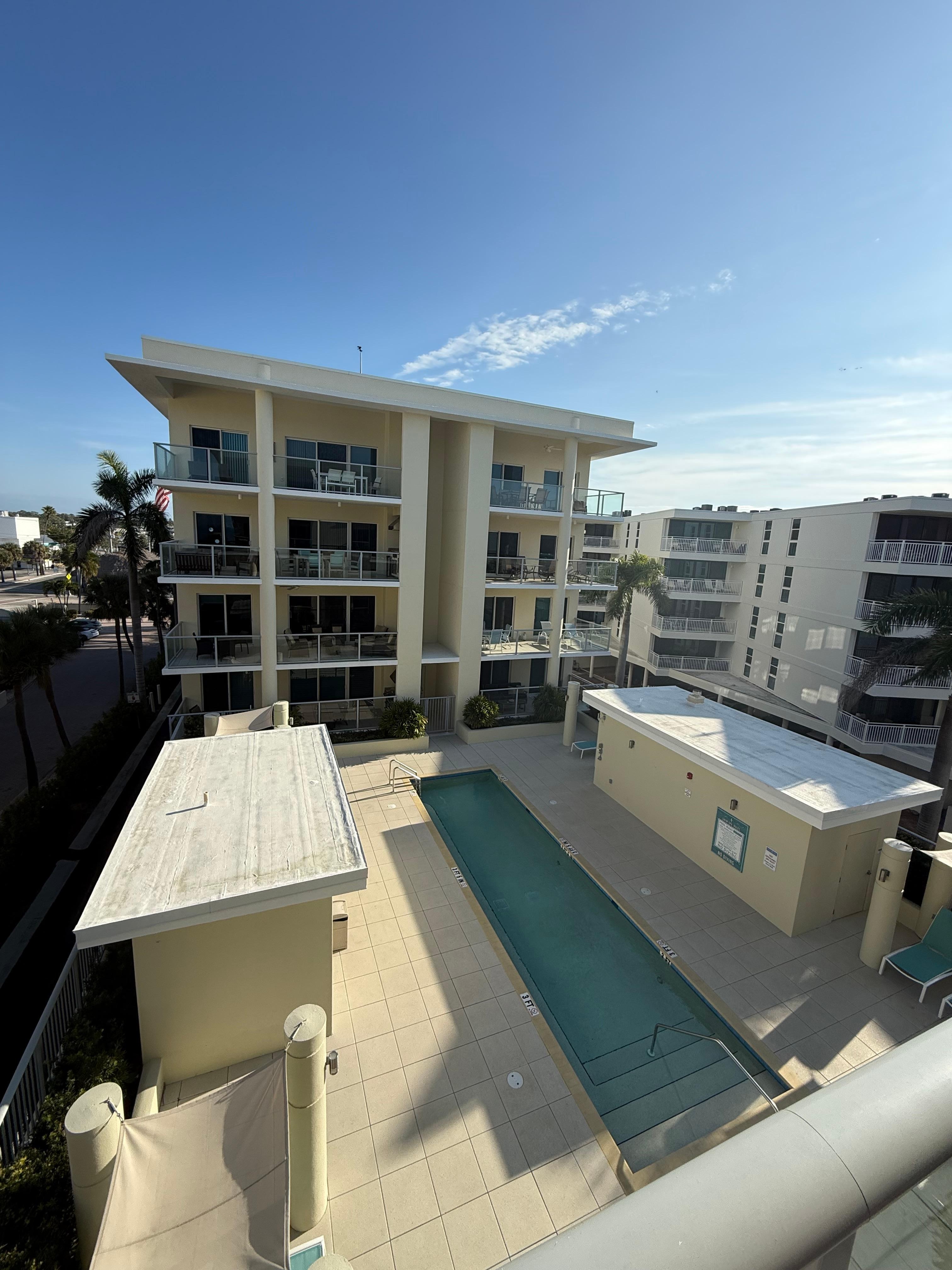 Crescent Siesta Key is an intimate complex, completed in 2006, of only 26 units located directly on the Gulf of Mexico. Two buildings in the complex, our condo (unit 404) is in the beach-side building with 16 units; back porch faces the Terrace pool and east building. There are 2 pools, a gulf front pool with spa and a second level terrace pool separating the 2 buildings; grill next to the terrace pool, however this unit is also equip with it's own private gas grill on the back porch.