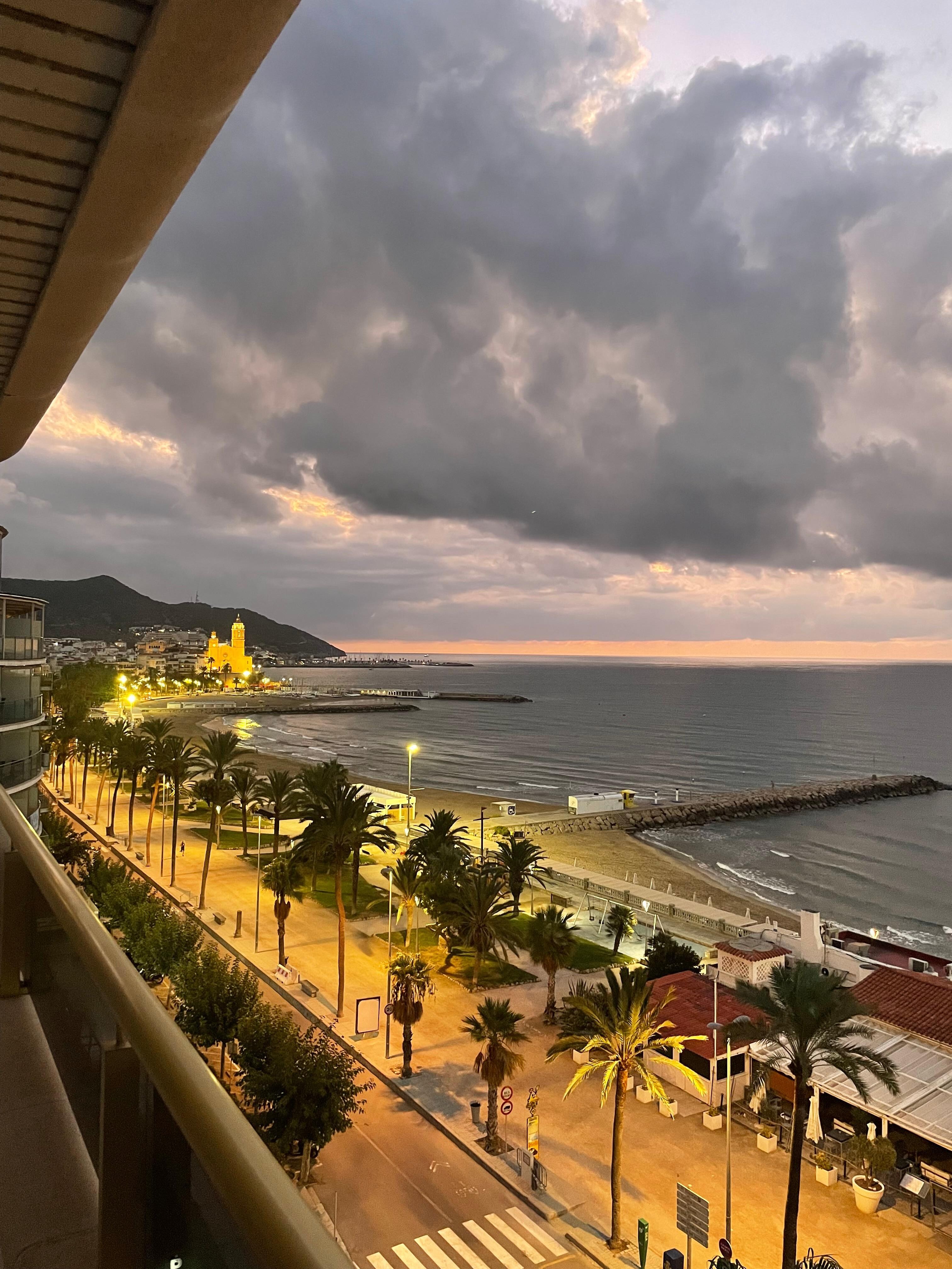 Incredible apartment on the seventh floor with privileged views of the entire Sitges coast. It is located in a development with three communal swimming pools and a garden. It has a terrace where you can have breakfast or long meals and enjoy the best sunsets. It can accommodate 4 people, since the apartment is divided into a double room and a sofa bed in the dining room, along with another normal sofa. The kitchen has everything you need for your stay (fridge, oven, kitchenware, coffee maker...). The spacious bathroom has a large shower.