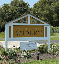 Willow Creek Winery is on-site with wine tasting, delicious food, sangria, and special events, and live music. A delicious grill menu is available on site. Please check on the separate winery website for hours and special events. Reservations suggested. Thank you for choosing our beautiful cottage for your stay. The cottages are located on our lovely 50-acre working farm vineyard and we ask that you be respectful of our farmers as well as our farm animals hens, roosters, geese.
