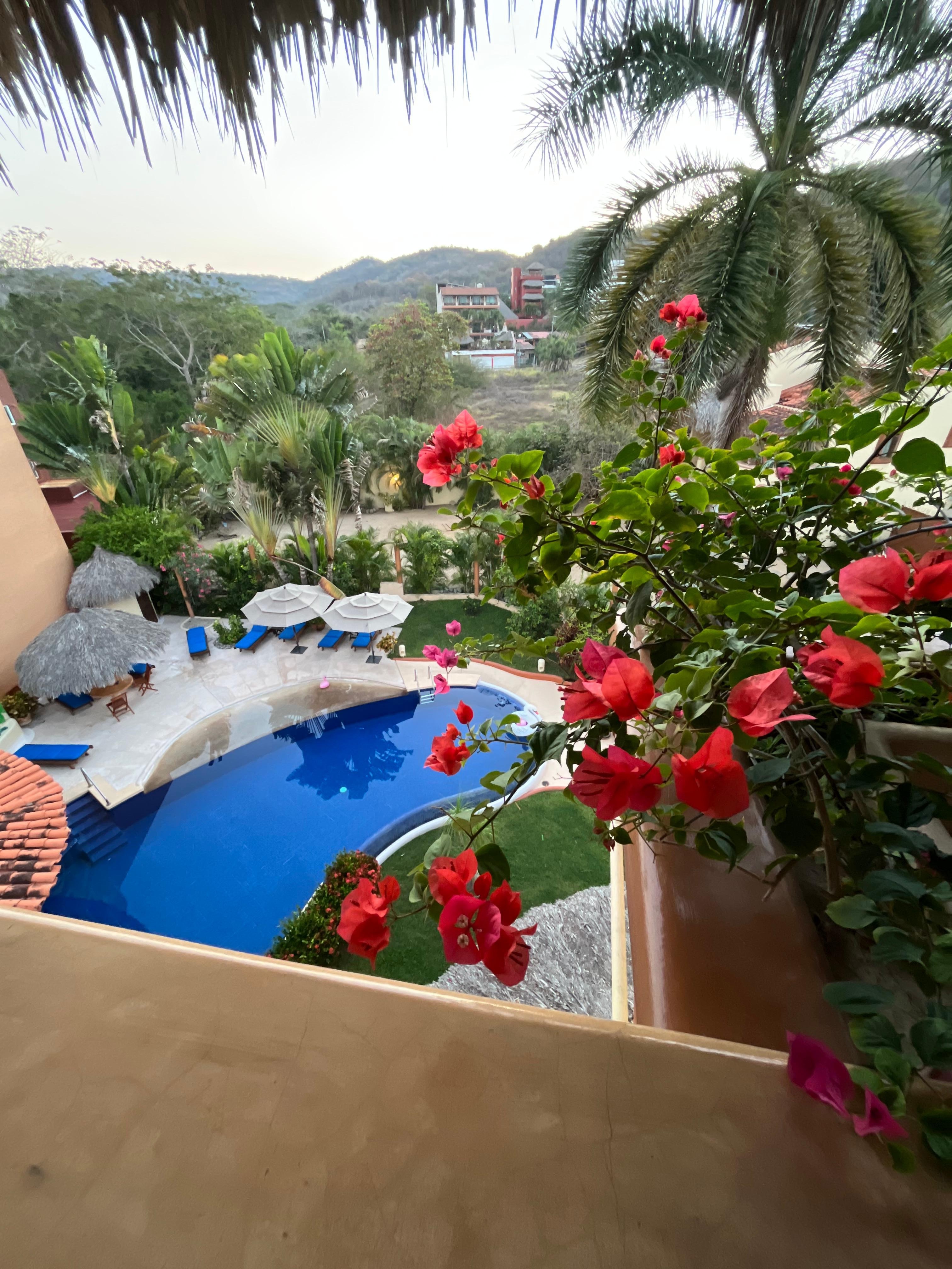 The location is just a short walk to the beach, where the ocean temps were warm and the waves just enough to enjoy the sound and float for long periods in the beautiful clear turquoise blue water. The town of Zihuatanejo is just a short trip down the rode and offers another type adventure of foods, shopping and an opportunity to take in this sweet town.
