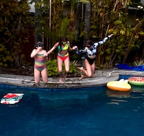 This is one of the biggest properties in Pacific Beach. The backyard is a private tropical oasis with HEATED POOL. All the bamboo has grown in. We have brand new waterproof palapa with 65 inch TV. All brand new patio furniture. Doors open into wall for indoor outdoor airflow. It’s perfect for 2 families with kids. When you walk in you have kids to the left in 2 bedrooms. Parents to the right with en-suite bathroom. Please come and enjoy our beautiful oasis.