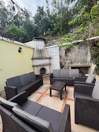 Smoking only allowed by the pool and the fireplace