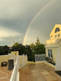 The Villa is ready for every rental need - short-term or long-term! So the kitchen is fully equipped and includes a full fridge/freezer, dishwasher, stove/oven, microwave, coffee maker and kettle. You even have your own washer and dryer. Bed linens, beach towels and bath towels are provided. You have your own private breakfast patio with table and chairs, front balcony with dining table and - best of all - a gorgeous pool with sun loungers and comfy Acapulco chairs!