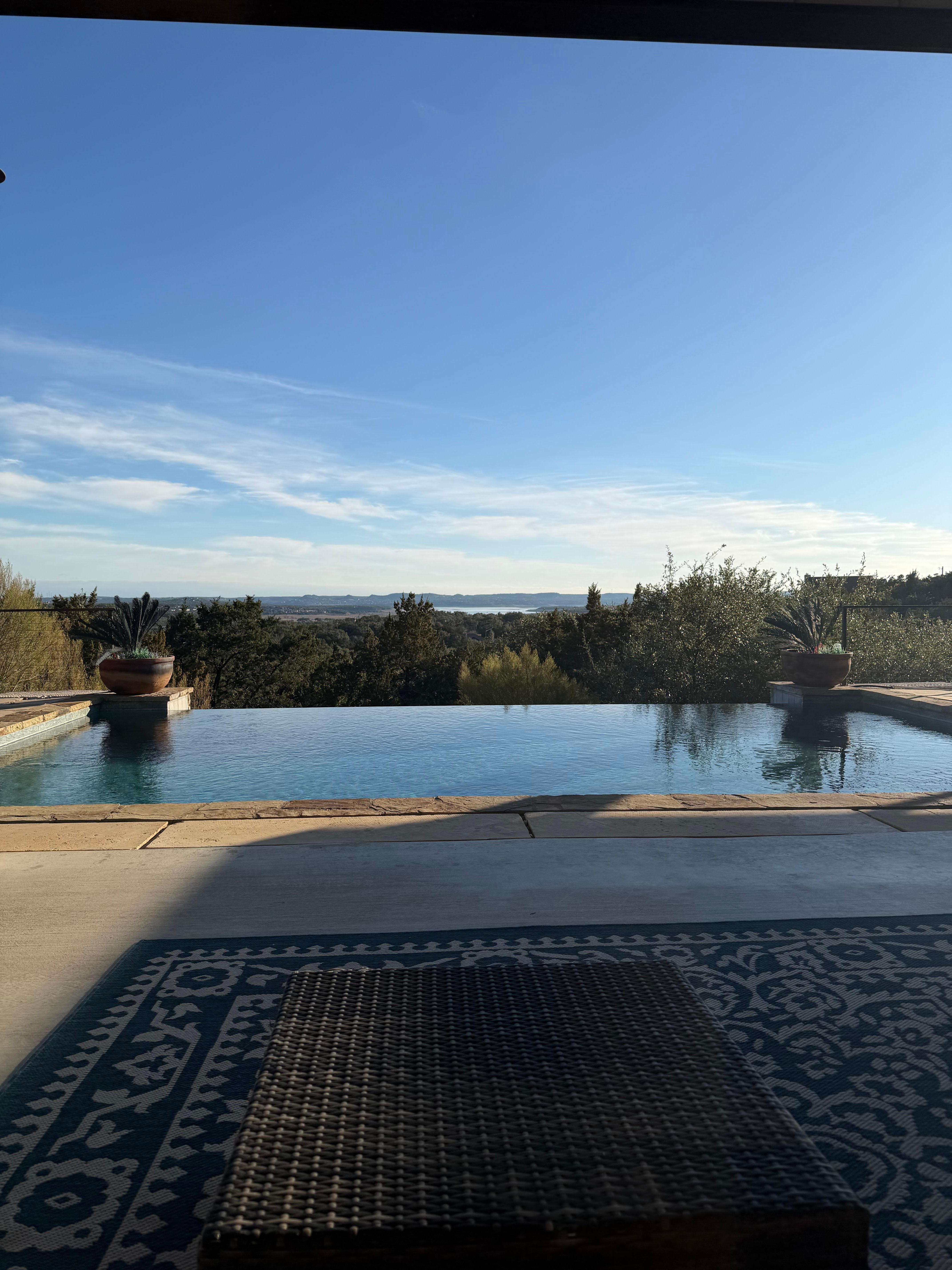 Infinity House overlooks the turquoise waters of Canyon Lake & the beautiful Texas Hill Country. With a feeling of serene seclusion, it is also close to great shopping, dining and recreation. A gorgeous infinity edge heated pool and spa that overlooks the lake makes this home perfect for a weekend of pure relaxation, or an activity-filled week of lake/river and poolside fun. Designed to accommodate everyone on a single-story level and provide incredible views no matter where you are inside or outside of the home; Infinity house is made to be inclusive and extremely accessible. This property has fabulous amenities, & a stunning design. We believe in stocking only high-end products, (bath soaps, coffees, teas etc.), as guests are our priority. This is the perfect lake getaway anytime of year!