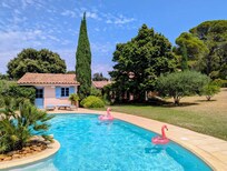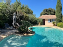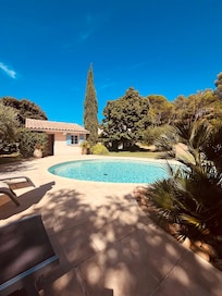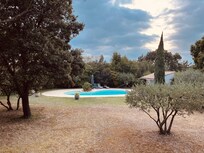 Large architect-designed villa of 160 m2 10 minutes from Avignon, not overlooked, with a beautiful shaded terrace overlooking a magnificent landscaped garden of 2800 m2 planted with pines and olive trees. Neat decoration, three bedrooms, all air-conditioned, each one on a terrace, towels and household linen provided. Billiards, wifi.