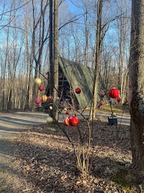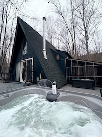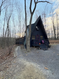 We welcome you to come experience the ultimate mountain escape at our cabin retreat. Aptly named "Ode to Joy” you , your friends and family will all enjoy the privacy, location and amenities our space has to offer. Featuring two large bedrooms , a small compact Kitchen , two full baths , a hall reading area, screened in porch , new soda June 2021 , wood burning fireplace ( Oct 15- March 15 ), two decks, brick patio , PRIVATE hot tub OPEN YEAR ROUND and a one of a kind light fixture from a famed artist imported from Denmark this adorable A Frame will check all of your boxes for the ultimate higher end relaxing getaway. Tucked in at the end of a private road in Coolfont Mountainside ww are a 3 mile car ride to downtown Berkeley Springs which has dining , shopping and world famous hot springs , 10 minutes to Cacapon State Park, 8 miles from Hancock and the C and O canal for walking running and biking . Coolfont mountain itself offers its own resort dining ( check web page for menus and hours )hiking , tennis, seasonal lake with fishing, kayaking and paddle board rentals , community hot tub and pool from Memorial Day to Labor Day and it's a short stroll to a our local Craft Brewery Berkeley Springs Brewing Company for a pint or a bite to eat and The wonderful Treetop restaurant overlooking the lake . Only a few miles from Cacapon state park with epic hiking , mountain biking , golf and lake .WE ASK THAT YOU MESSAGE FIRST BEFORE INSTANT BOOKING WITH PETS- $50 - pet fee.Dogs only please one max . Also please note no outdoor fires are allowed do to the dense tree coverage . In winter months it does snow in the WV mountains . Be prepared with a 4wd vehicle as we do not cancel or move reservations due to small storms .