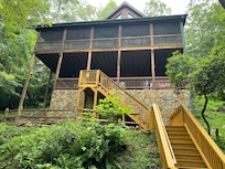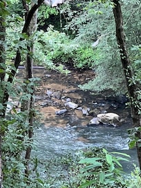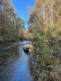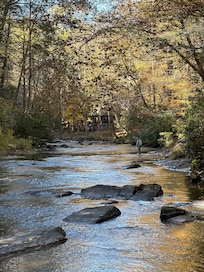Whether you’re looking for a place known for incredible fly fishing, watching the kids float on tubes in the river, or enjoy some down time to read a book and warm your feet by the fire... you’ll feel at home here at Creel Lodge. The private enclave encompasses nearly three acres of beautiful, pristine property with 600 feet on Mountaintown Creek... It's actually a river and our property is the largest parcel in the area. Truly a family-friendly "Fisherman’s Retreat."