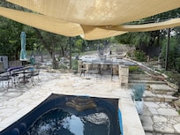 Welcome to your Hill Country hideaway located in a beautiful and serene setting on the signature 7th hole of Point Venture Golf Course with private access to Lake Travis. It's time to exhale and enjoy the tranquil outdoors on over 2000 square feet of tiered stone patios. Refresh, relax and kick back with a dip in your private plunge pool overlooking the golf course. Fire up the gas grill to cook up some great meals and dine al fresco. At the end of the day, light the outside candles and/or fire pit to continue enjoying the sunset while watching the deer come out to play.