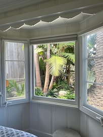 This newly remodeled Private Cottage is perfectly located with a short walk to the Beach in the Heart of Laguna Village amongst beautiful palms and a lush mature garden. Open Beam Ceilings with a modern cottage charm all the rooms are bright and sunny. 2 bedrooms and 2 baths (additional office room can sleep 2 more), brand new kitchen, expansive deck perfect for lounging with coffee all the way thru the day to a beautiful sunset, then star filled evening dining in… Or walk to Laguna’s many wonderful restaurants within just a few blocks. Off the master suite is a lovely private yard under mature palms for an additional turf area with lounge chairs, lots of privacy or great for hosing off after a day at the beach. The expansive deck off the kitchen has a BBQ, comfy and new all-weather wicker sectional for hanging out and a large eating table for 6. All surrounded by a beautiful tropical garden. 3 blocks to great Surfing Beaches, walk to Summer Park Concerts, and Laguna Village from this Charming Cottage. The free trolley stops just across the street, perfect for hitching a ride to the famous Pageant of the Masters, Sawdust Festival, or the many Laguna Art Museums. Very Private Home and comfortable, clean, with all new everything. Beach chairs, umbrella, beach towels, wet suit, Surf Board, and Boogie Boards, bed linens and bath towels. Games and movies on demand from the HD SmartTV. High speed wire-less internet. Across the street is quaint Nita Carmen Park, public swimming pool, tennis courts and running track.