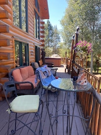 Cozy log cabin with wrap-around porch, Hot tub Loft space, Washer & Dryer