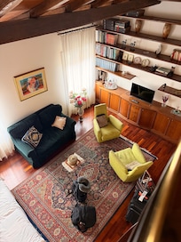 In spite of its extremely central location, Via del Mortaro is an incredibly quiet apartment, as it overlooks an inner court.