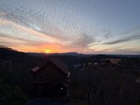 View! View! View! The view from the back mountain side deck and front side deck is spectacular with breath taking sunsets over Bluff Mountain to your left and sparkling night time scene of Sevierville. On a clear day you can see 60-70 miles off the back deck where the Jellico Mountains are which is the Kentucky and Tenneessee boarder. You can enjoy the nightly Dollywood fire works display from the back deck during the summer months and the flickering night lights of Sevierville & Pigeon Forge at night in the distance or The LED ferris wheel at the Islands in Pigeon Forge. There is a view from every room!