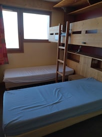 living room + a separate bedroom with 3 single beds