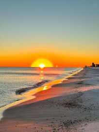 For years, while working abroad and living in rented homes, we dreamed of owning a place on the beach. Perdido Key has all it takes for a great beach visit or extended stay – warm summers with cooling breezes, perfect spring and fall weather, and mild winters, surrounded by the Gulf of Mexico and life. There is so much to see and do here. The problem will be fitting everything in! You'll soak, roast, take long beach walks, meet new people, shop and sigh. Eat from the local seafood restaurants like pigs, sleep like babies. Seafood does taste better here, and you'll find yourselves going to bed early because you're exhausted, and getting up early because there is so much you want to do! Viewed from our penthouse floor balcony in fall, winter and spring, sunrises and sunsets are truly estupendo.