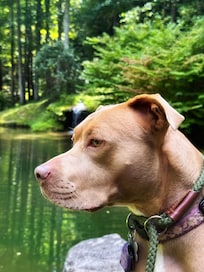 Natural Waterfall, Pond, and 2 1/2 acres of dog paradise!