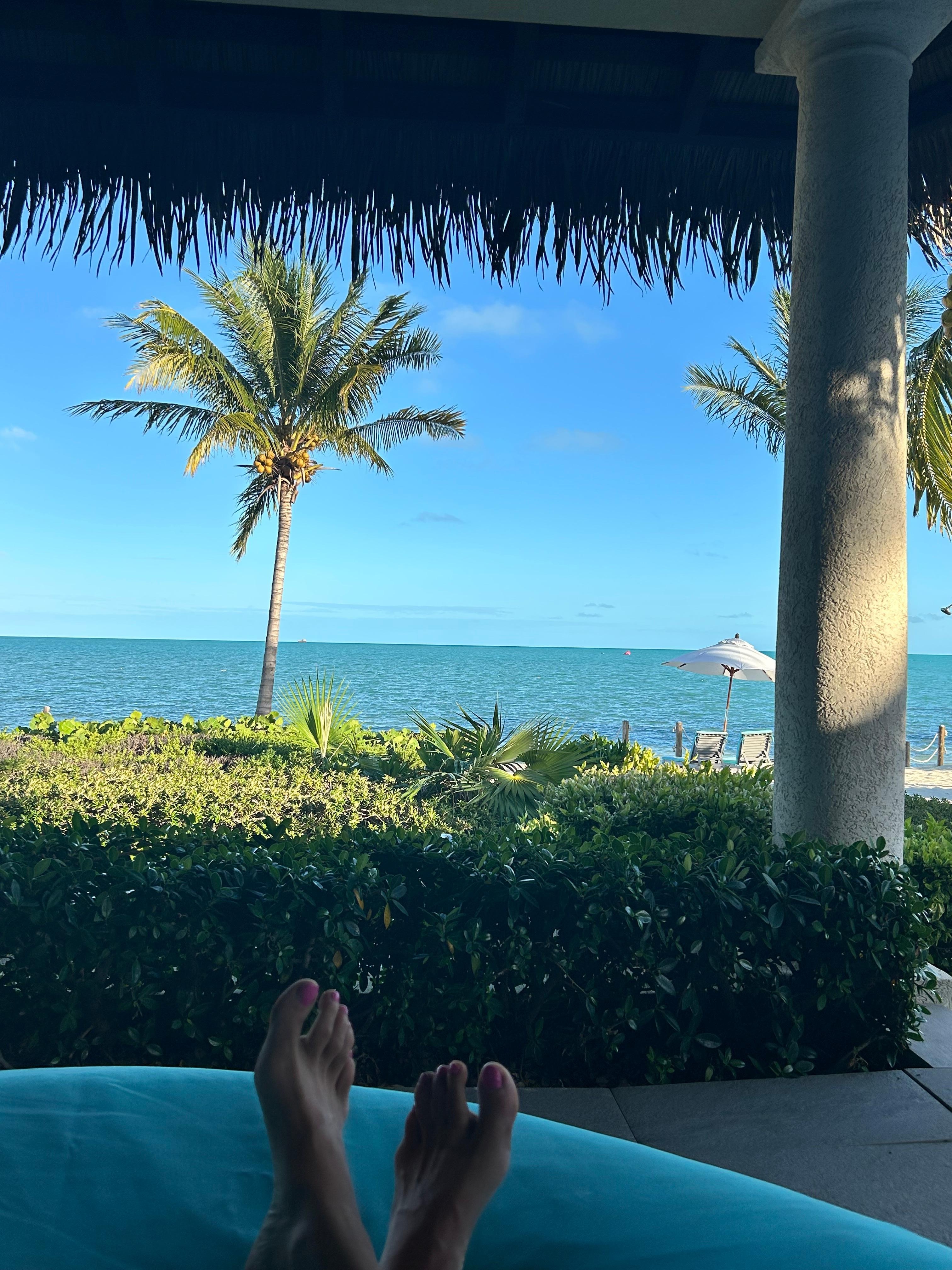 Simply put PARADISE! Swaying Palms is a set of (9) luxurious romantic single bedroom Beachfront Bungalows located on beautiful Long Bay Beach. When you step off your back patio your toes are in the sand! You will not find a vacation spot closer to the beautiful turquoise waters on the entire island! The nine Beachfront Bungalows share a very generous 554 linear feet of beachfront making it the lowest density resort on the island. Each Bungalow is separated by at least 46'. Each of the nine has a single bedroom with King Size bed, kitchen, living room, outdoor patio, large thatch palapa with day bed, plunge pool, outdoor shower, BBQ Grill, beach umbrella and chaise loungers. Also available to our guests is a fully outfitted gym with amazing views of the ocean.